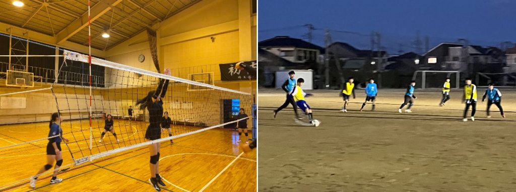 八潮南高校女子バレーボール部(左)および男子サッカー部(右)の部活動の様子
