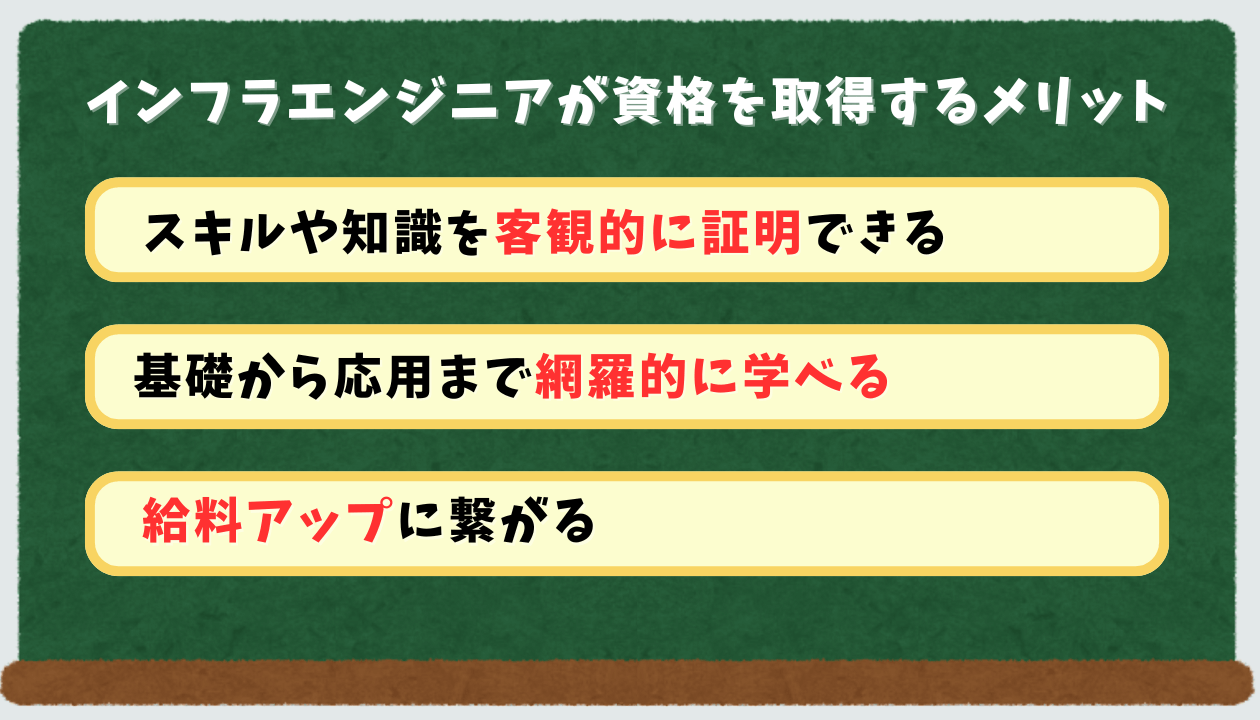 インフラエンジニアが資格を取得するメリットは、下記のとおりです。