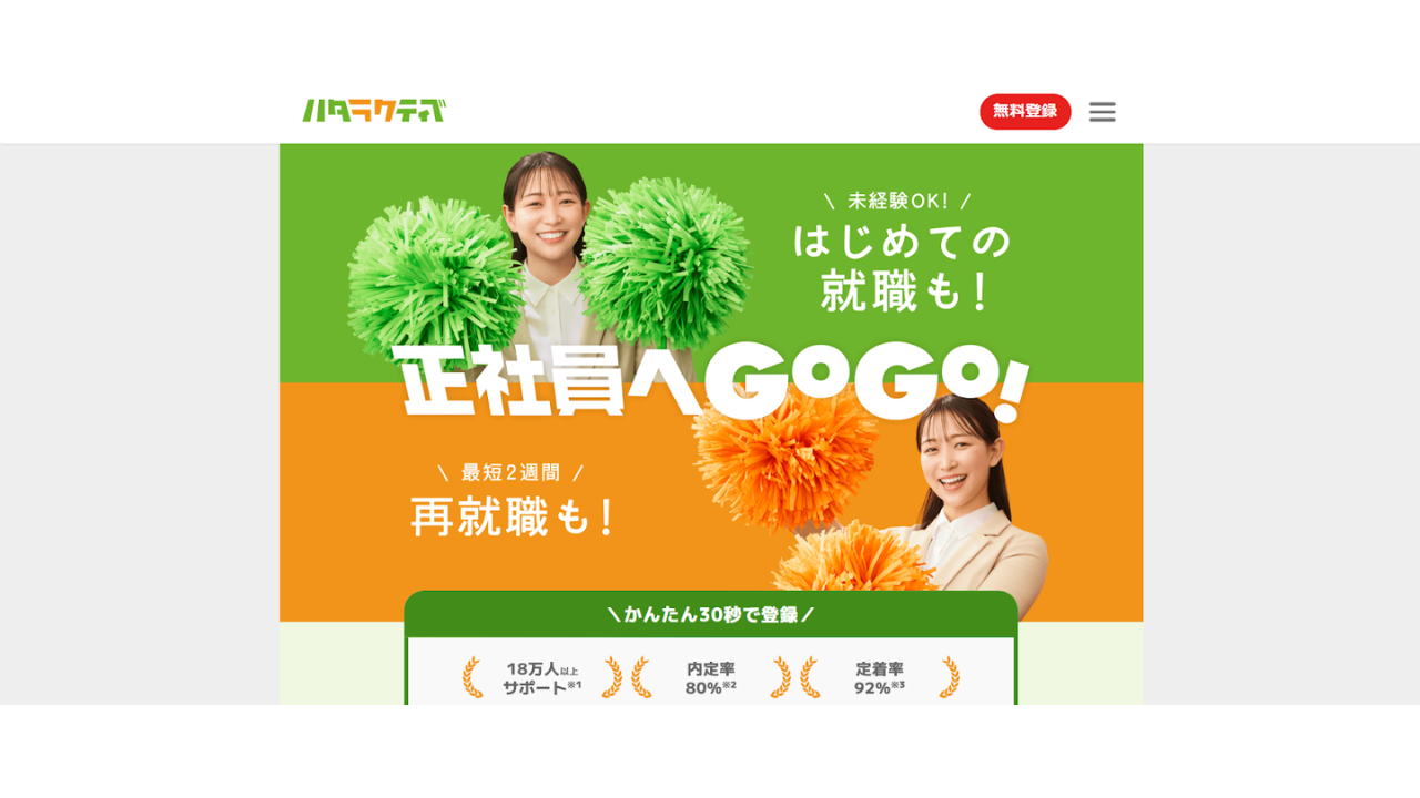 公式サイト | 全求人が20代向け!約8割が未経験OK求人 |