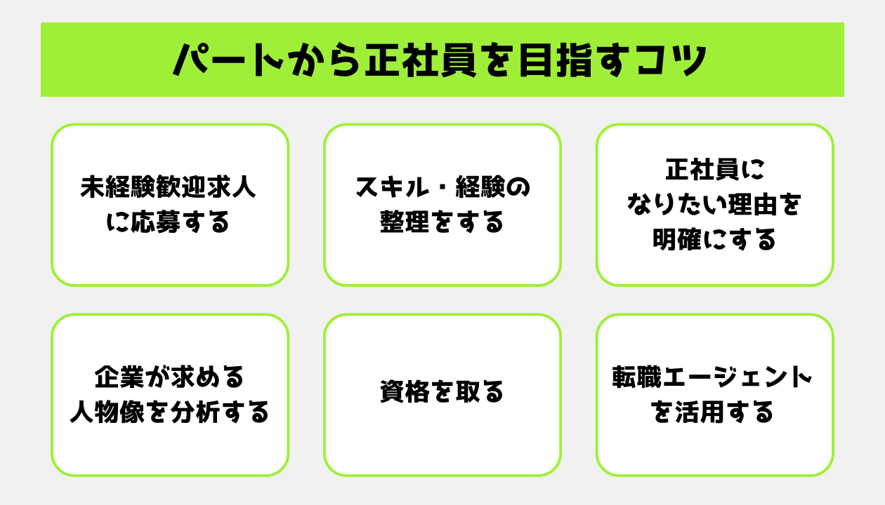 - パートから正社員への転職を成功させるコツ