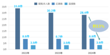 - 転職者は多くの求人をじっくり吟味して行動する傾向に。閲覧してから面接まで至る割合は約13%になっているため、閲覧の時点で