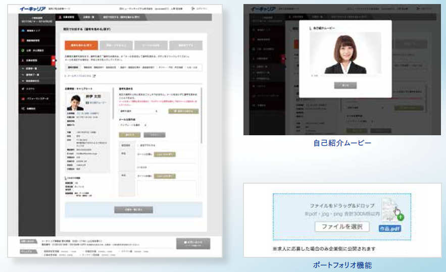 エンジニアやデザイナーなどのクリエイター向けに、求職者が作った成果物を添付できる機能があります。