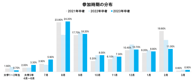 この時期は学生の夏休み時期に相当し、学生にとってインターンシップに参加しやすい時期です。