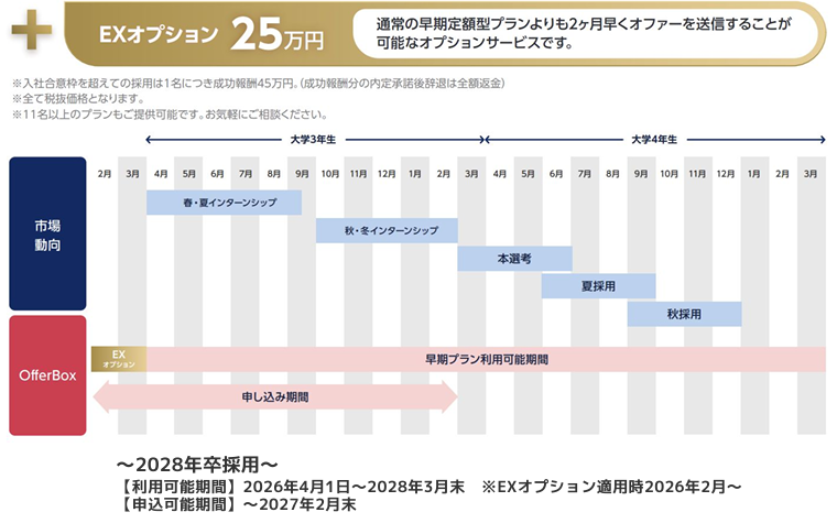 • 早期定額型プラン: 採用広報解禁日前からオファーを開始