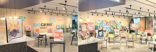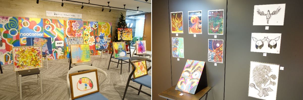本展への協賛・参加は、単なるアート展示にとどまらず、障がい者・高齢者など多様な才能を社会に届ける重要な機会であると考えています。企業のエントランスや会議室など、日常的に目にするスペースに作品を展示することで、社員同士の対話や気づきが生まれるだけでなく、アーティストにとっても自身の作品を広く発信し、社会との接点を持つことができる貴重な場となります。第2回開催以降は「ネオキャリア賞」を受賞したアーティストを対象に個展の開催なども行い、才能あるアーティストの継続的な発表機会の創出にも取り組んできました。