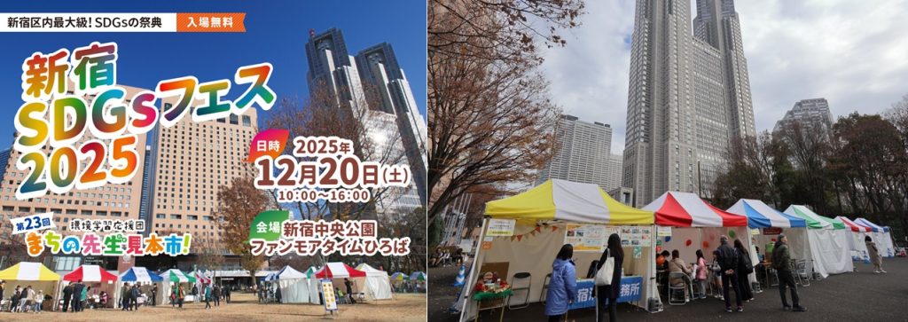 2025年12月20日(土)、新宿区立中央公園で開催された「新宿SDGsフェス2025」(主催:NPO法人新宿環境活動ネット)に参加しました。当日は、NPO・企業・行政機関など36団体が出展し、1,478名の来場者で会場は大いににぎわいました。