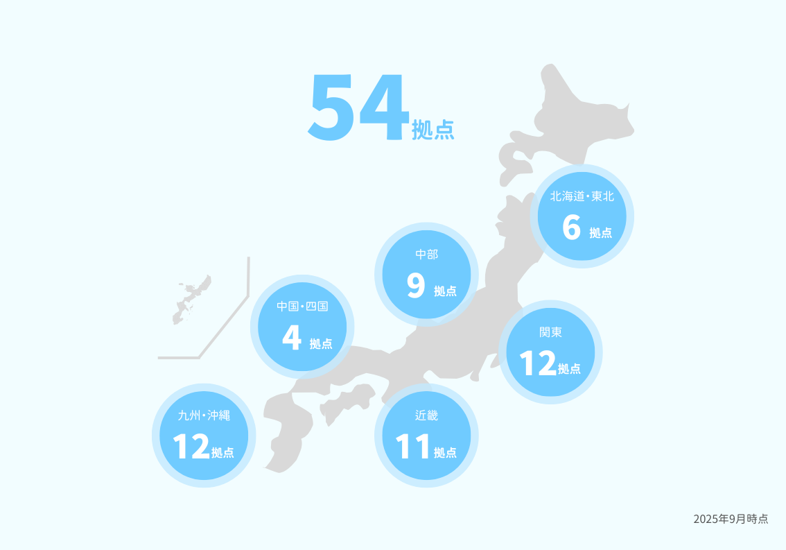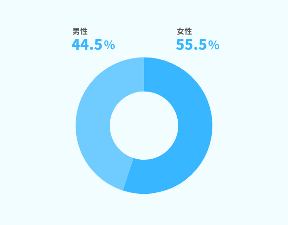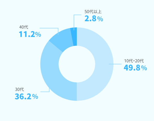 働く環境 WORK ENVIRONMENT 数字で見るネオキャリア ※2025年9月時点 年齢構成比 男女比率 売上 従業員数 3,486名※グループ連結・正規非正規混合(2025年2月28日時点) 事業部数 53事業 拠点数
